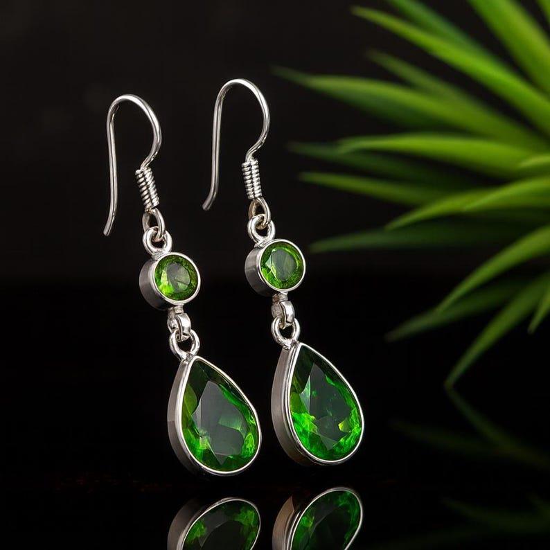 Green Peridot Gemstone Earring, 925 Sterling Silver earring, Handmade Jewelry Earring, Drop Dangle Earring, Gift For Women Jewelry