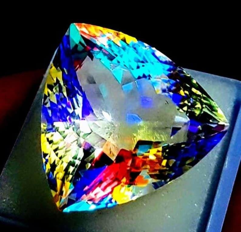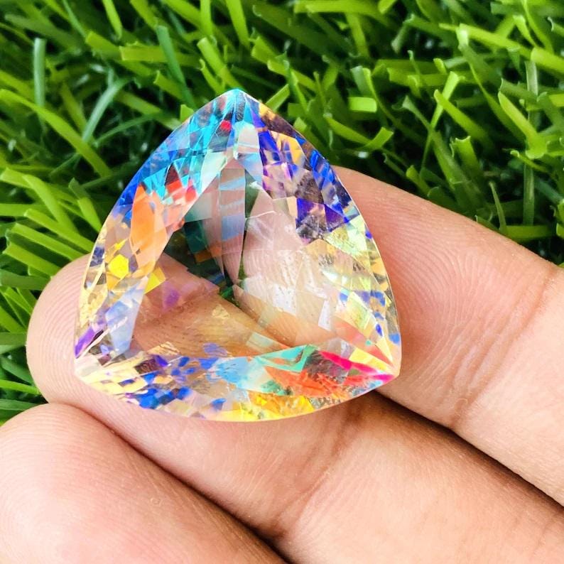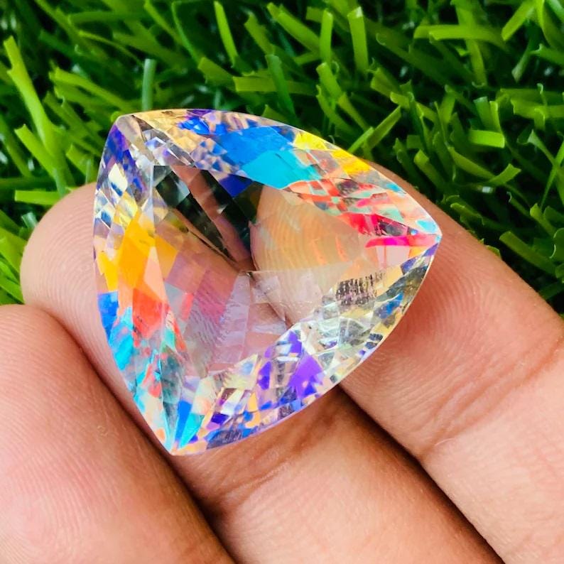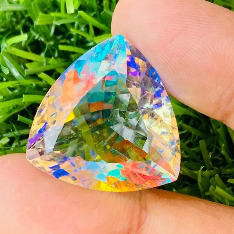 Mystic Topaz Trillion Cut Gemstone: Rainbow Faceted Stone, 40 Carat