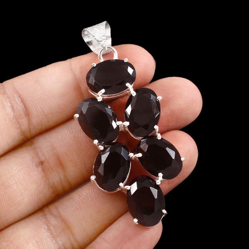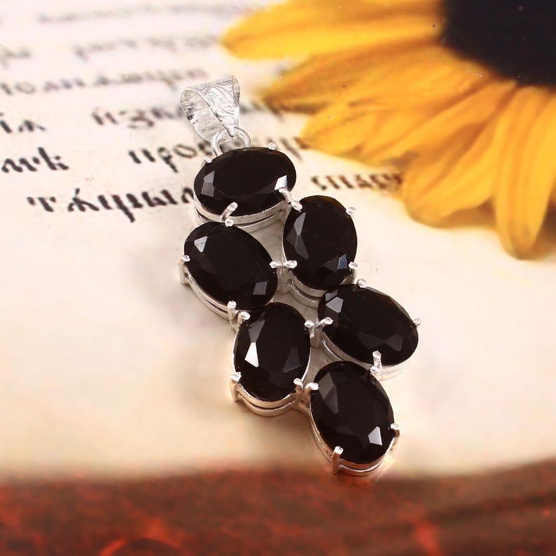 Black onyx pendant, onyx gemstone pendant, 925 sterling silver pendant, handmade pendant, gift for her, anniversary gift, vintage pendant