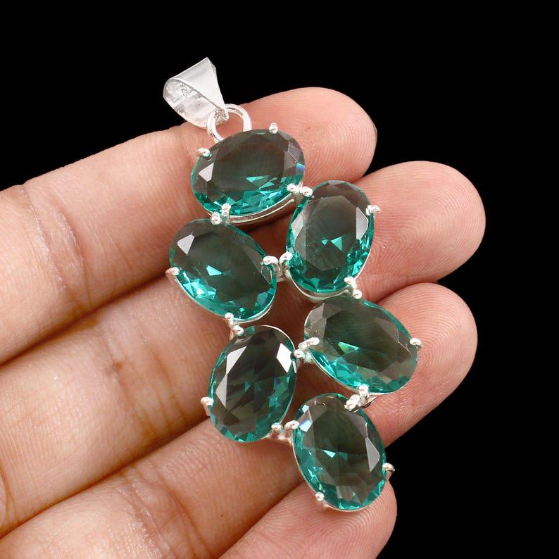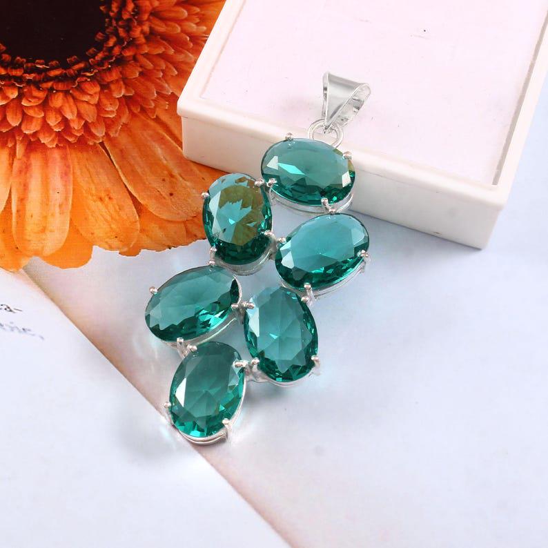 Green sapphire pendant, handmade pendant, 925 sterling silver pendant, gemstone pendant, gift for her/him, anniversary gift, birthday gift