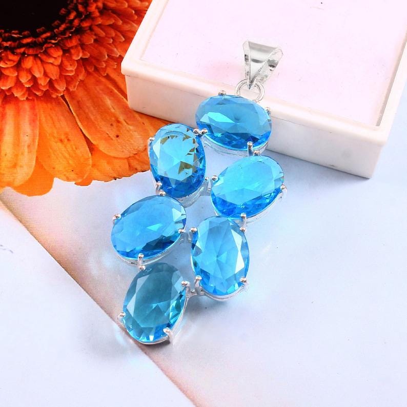 Blue Topaz Pendant, 925 Sterling Silver Pendant, Vintage Style Pendant, Handmade Pendant