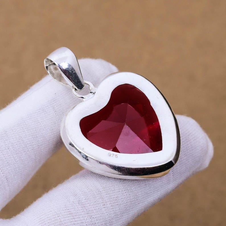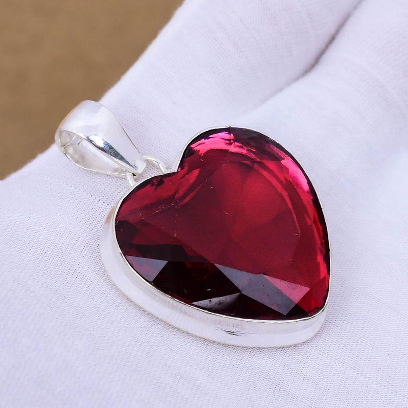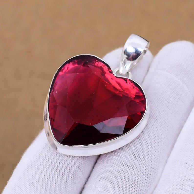 Red Garnet Gemstone Pendant | 925 Sold Silver Pendant | Handmade Pendant | heart Shape Pendant | Healing Crystal | New Year Gift For Her