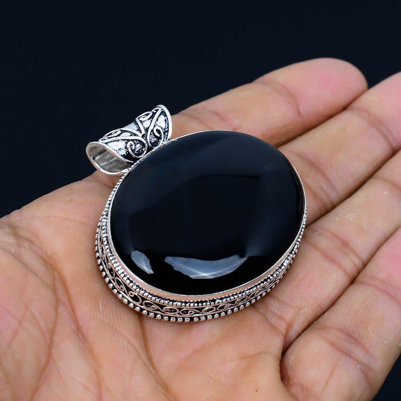 Black Onyx Pendant: Handmade 925 Sterling Silver Oval Gemstone