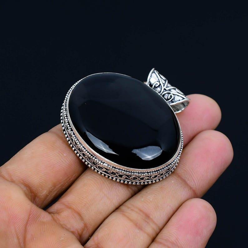 Black Onyx Gemstone Pendant 925 Sterling Silver Pendant Oval Gemstone Pendant Handmade Silver Jewelry Gift For Her Bridal Jewelry