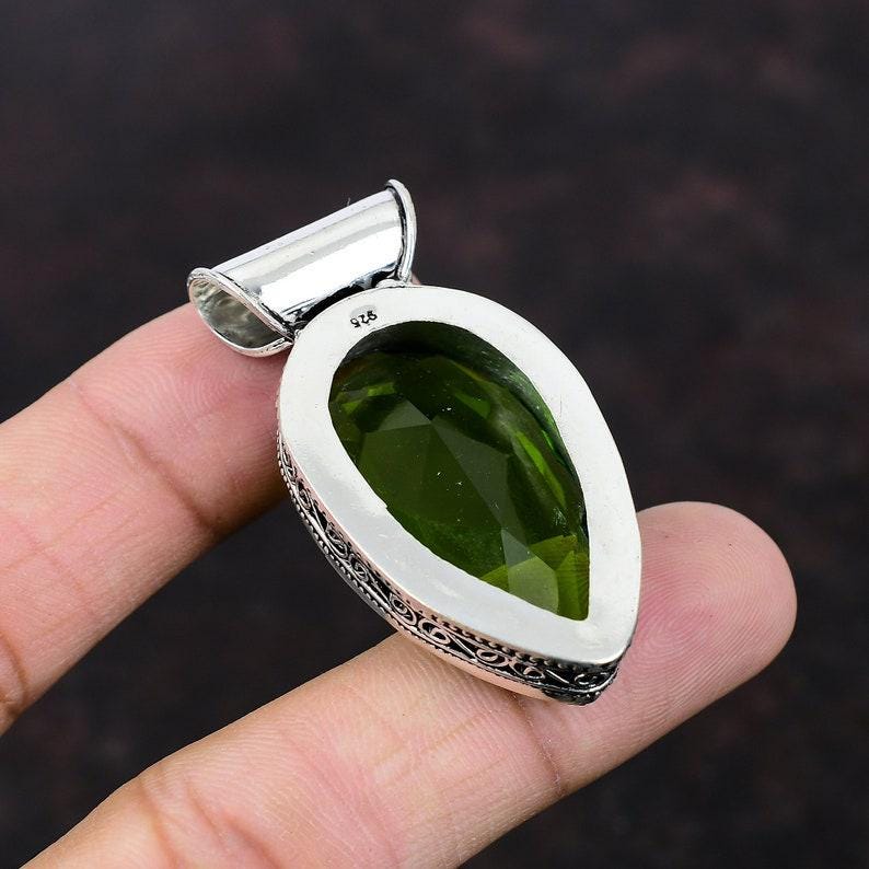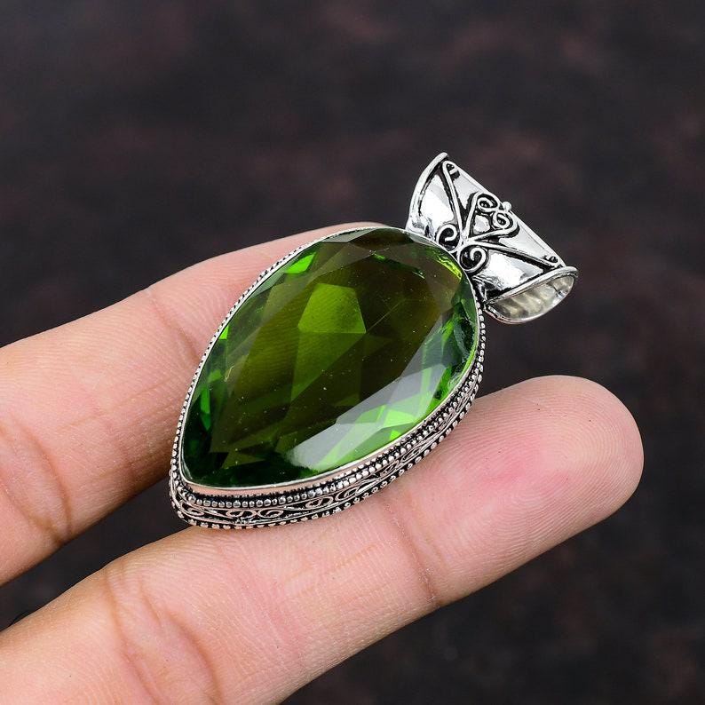 Peridot Faceted Pendant Handmade Gemstone Jewelry 925 Sterling Silver Pendant Peridot Jewelry Vintage Pendant Gift For Her Brand New Pendant