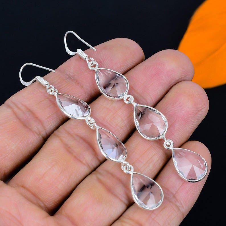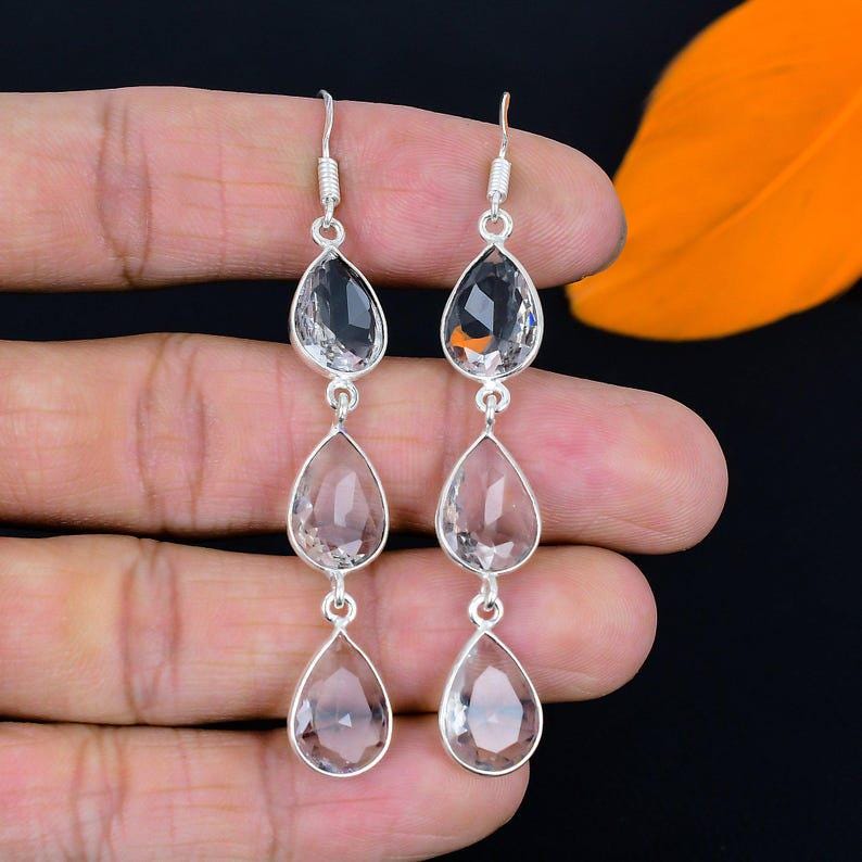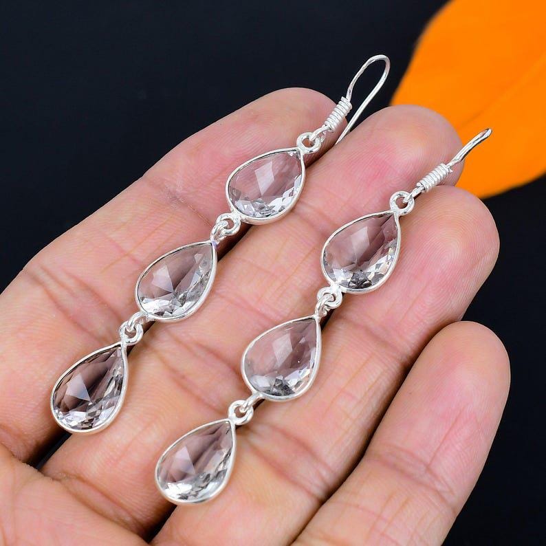 White Topaz Earring, 925 Sterling Silver Earring Handmade White Topaz Gemstone Faceted Earring, Vintage earring jewelry Birthday Gift's