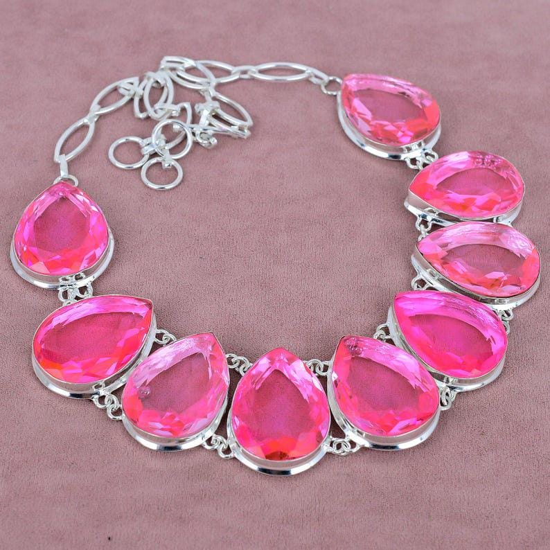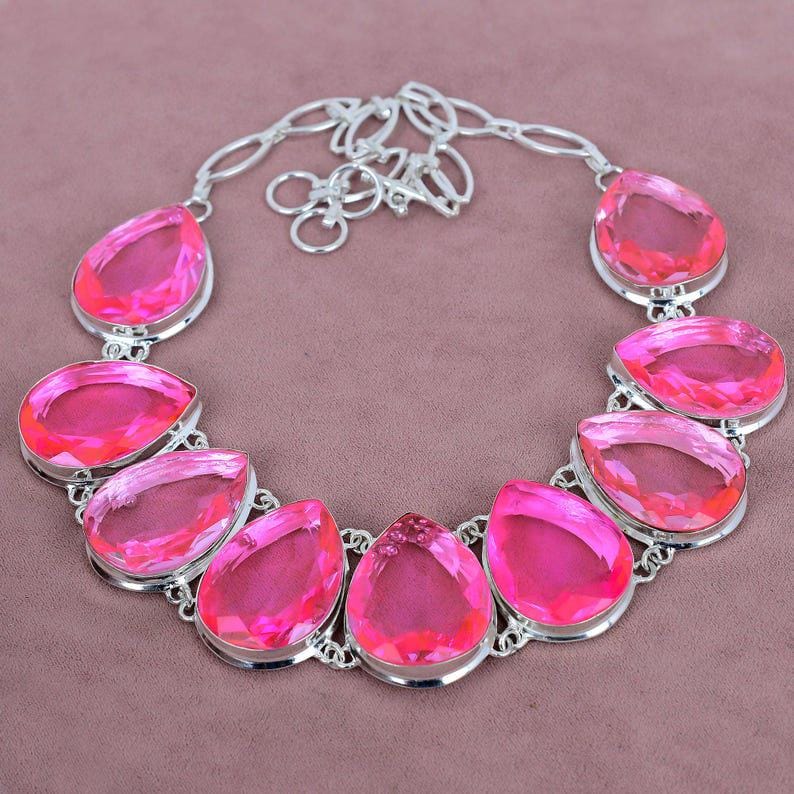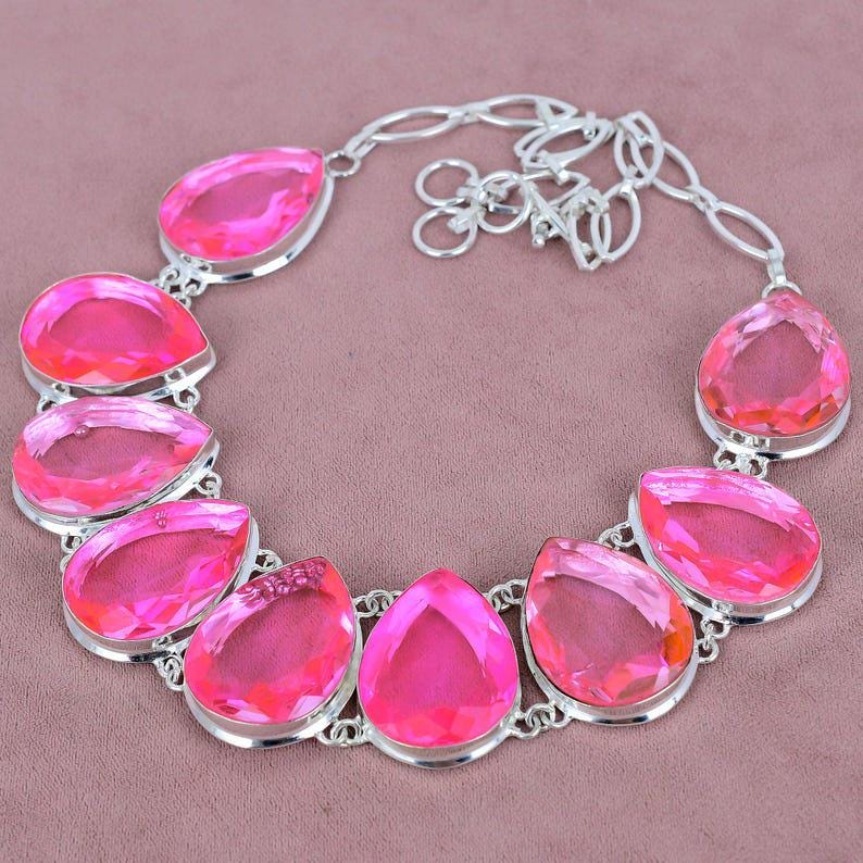 Pink Kunzite Necklace 925 Sterling Silver Necklace Adjustable Chain Necklace Bridal Necklace Bohemian Jewelry Birthday Gift For Her