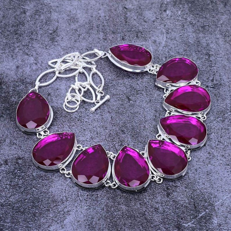 925 Sterling Silver Necklace | Pink Rubellite Necklace | Handmade Necklace | Women Necklace | Bridal Necklace | Bohemian Jewelry