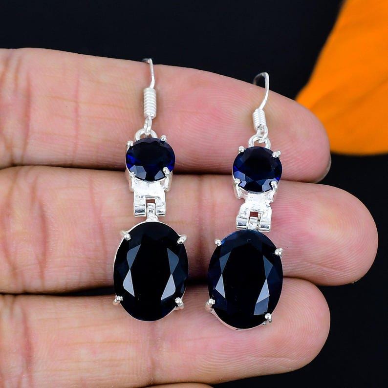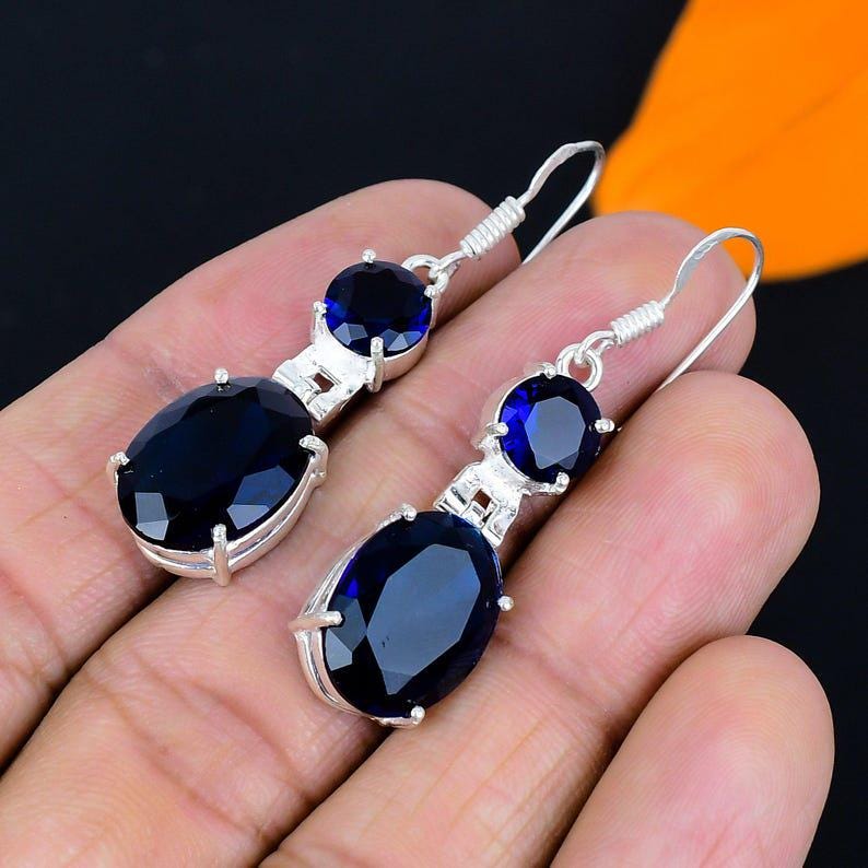 London Blue Topaz Earring, 925 Sterling Silver Earring, Handmade Silver Earring, Antique Earring Blue Topaz Gemstone, Gifts For Mother