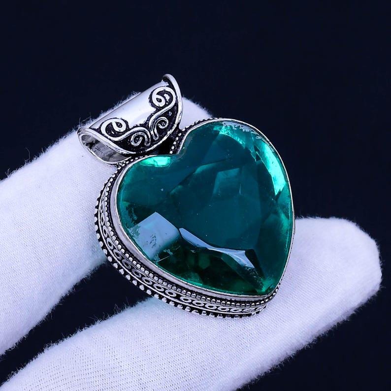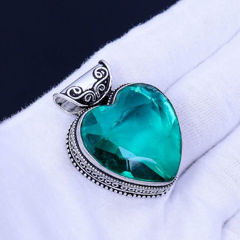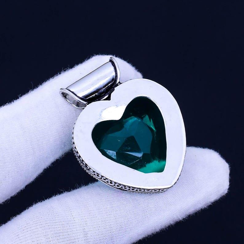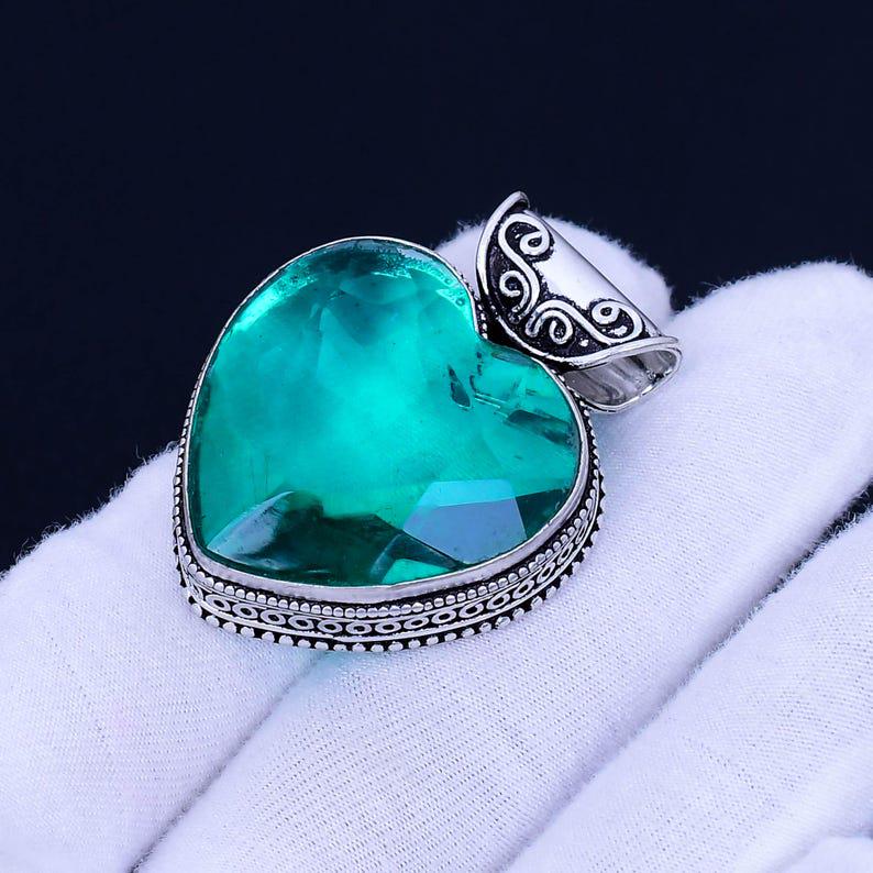 Green Apatite Gemstone Pendant, 925 Sterling Silver Pendant, Handmade Necklace, Bohemian Pendant, Heart Shape Pendant, Vintage Pendan