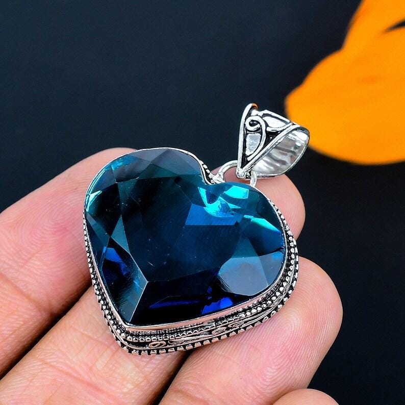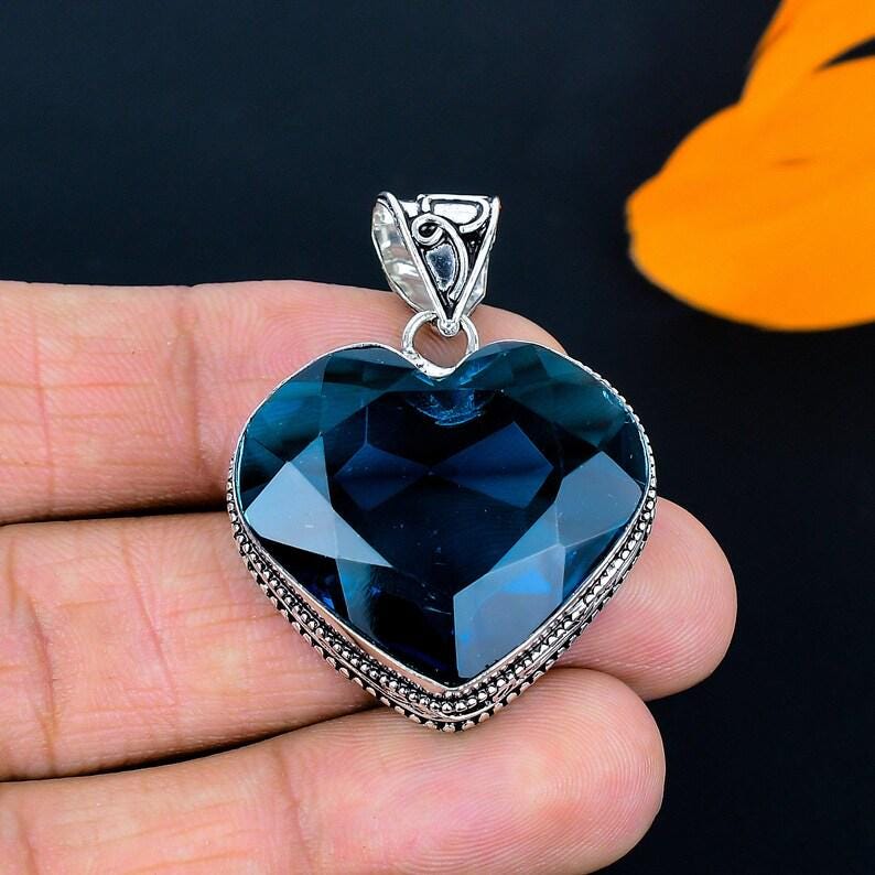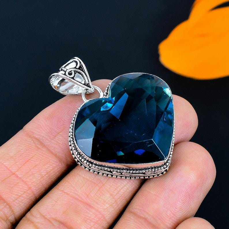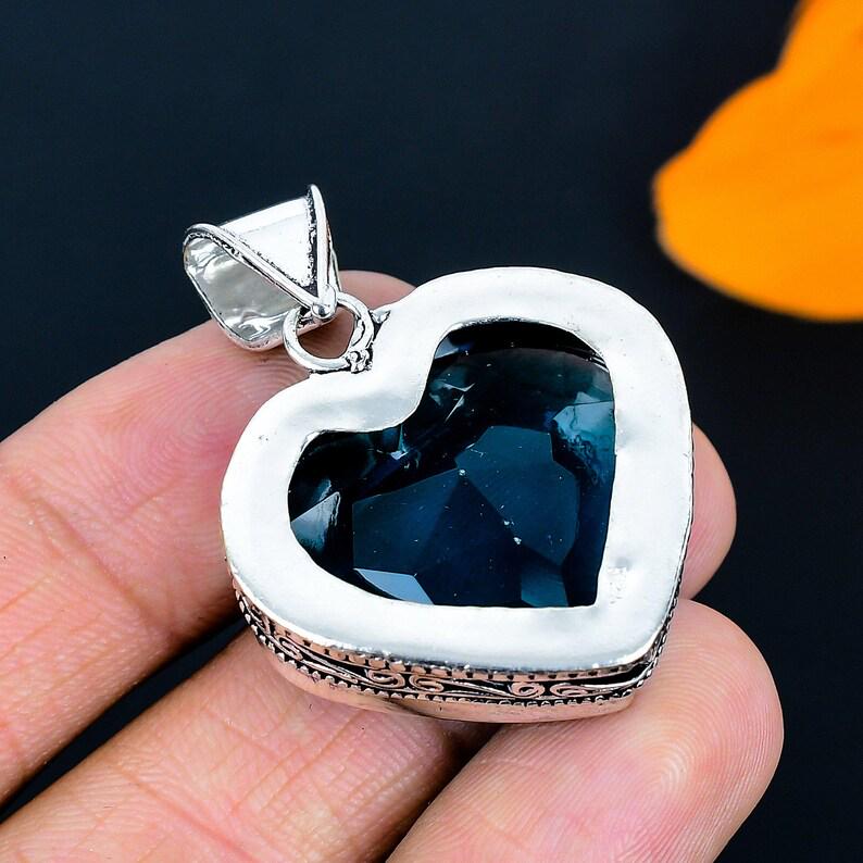 Iolite Heart Pendant in Vintage 925 Sterling Silver Jewelry, Handmade Gemstone Jewelry Pendants For Mother's Day Gifts, Best Antique