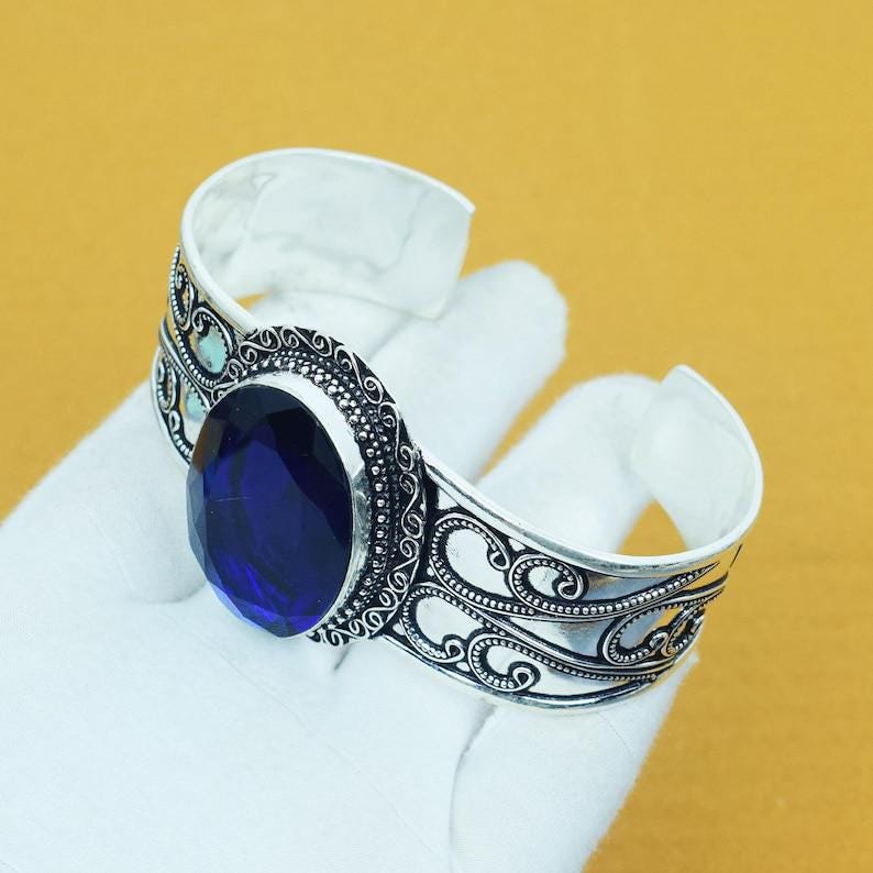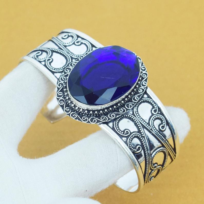 Tanzanite Quartz Gemstone Bangle 925 Sterling Silver Cuff Bracelet Women Bangle Bohemian Jewelry Handmade Bracelet Vintage Bangle
