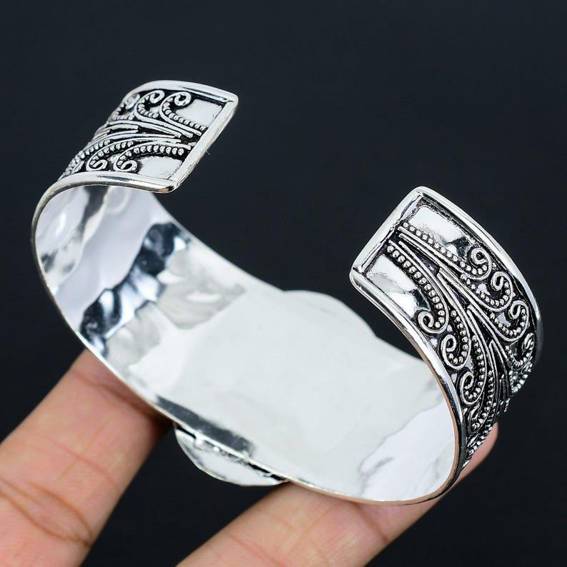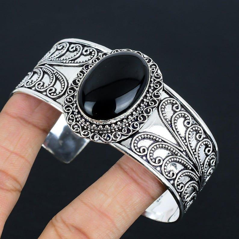 Black Onyx Bangle, 925 Sterling Silver Cuff, Bohemian Handmade Jewelry