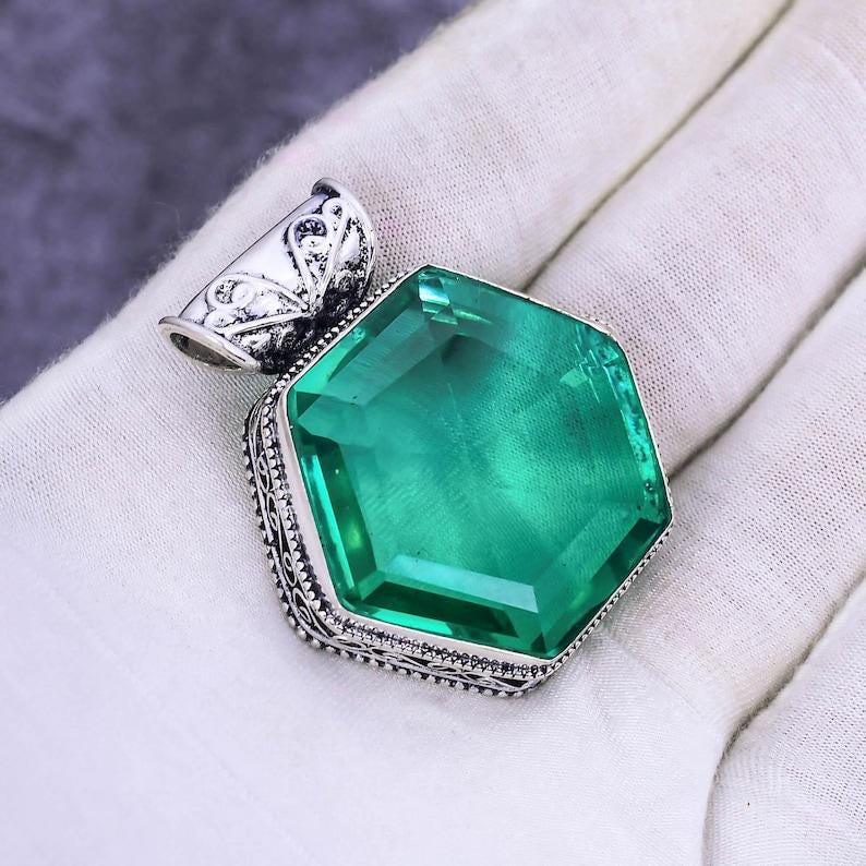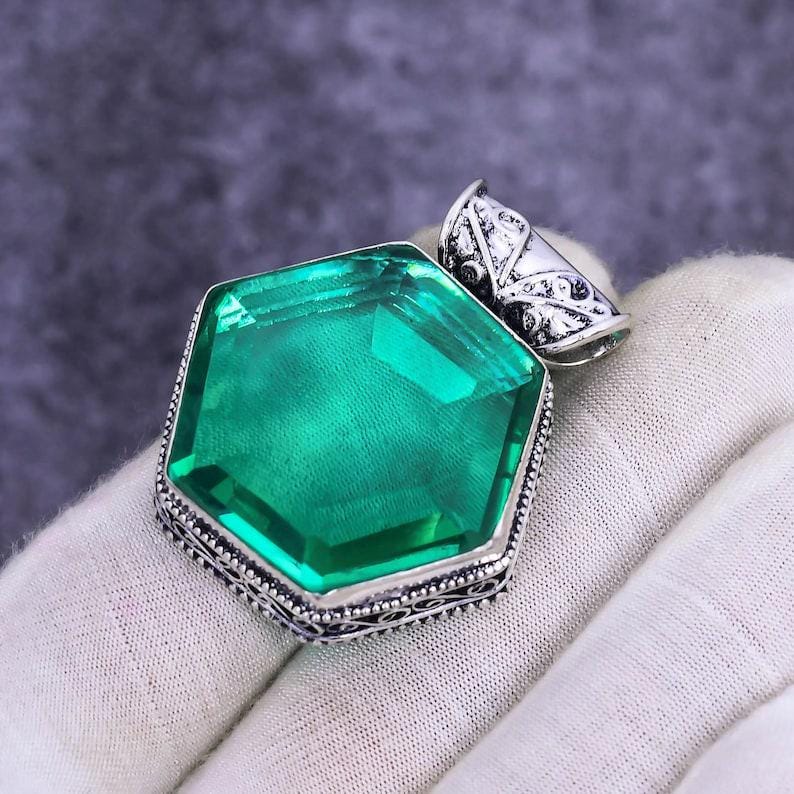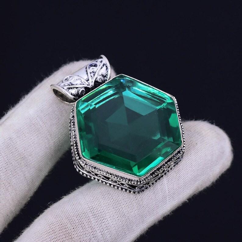 Green Apatite Pendant, 925 Sterling Silver Pendant, Handmade Necklace, Bohemian Pendant, Gift For Her, Star Shape Pendant, Vintage Pendant