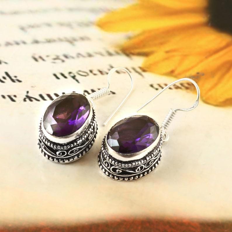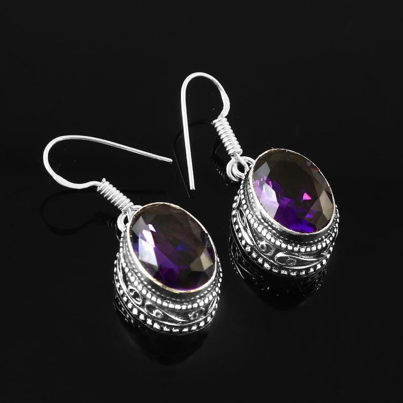 Amethyst Quartz Sterling Silver Dangle Earrings: Vintage Boho Jewelry, Purple Amethyst Earring