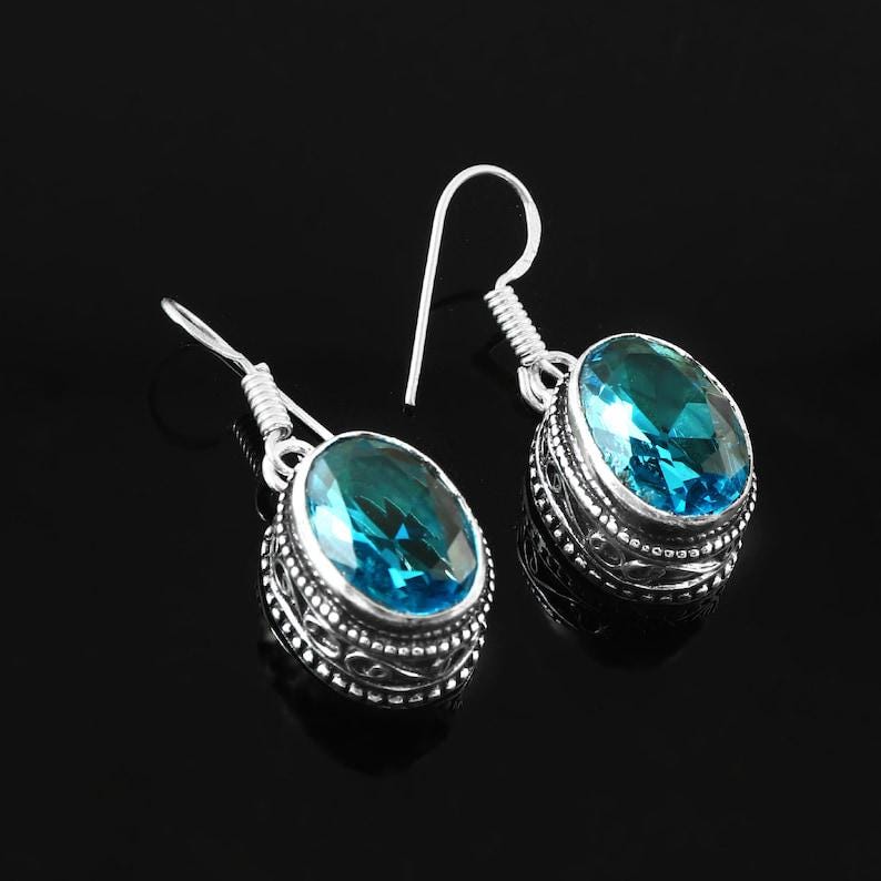 Swiss Blue Quartz Dangle Earrings: Minimalist Sterling Silver Jewelry , Swiss Blue Quartz Earring , topaz drop