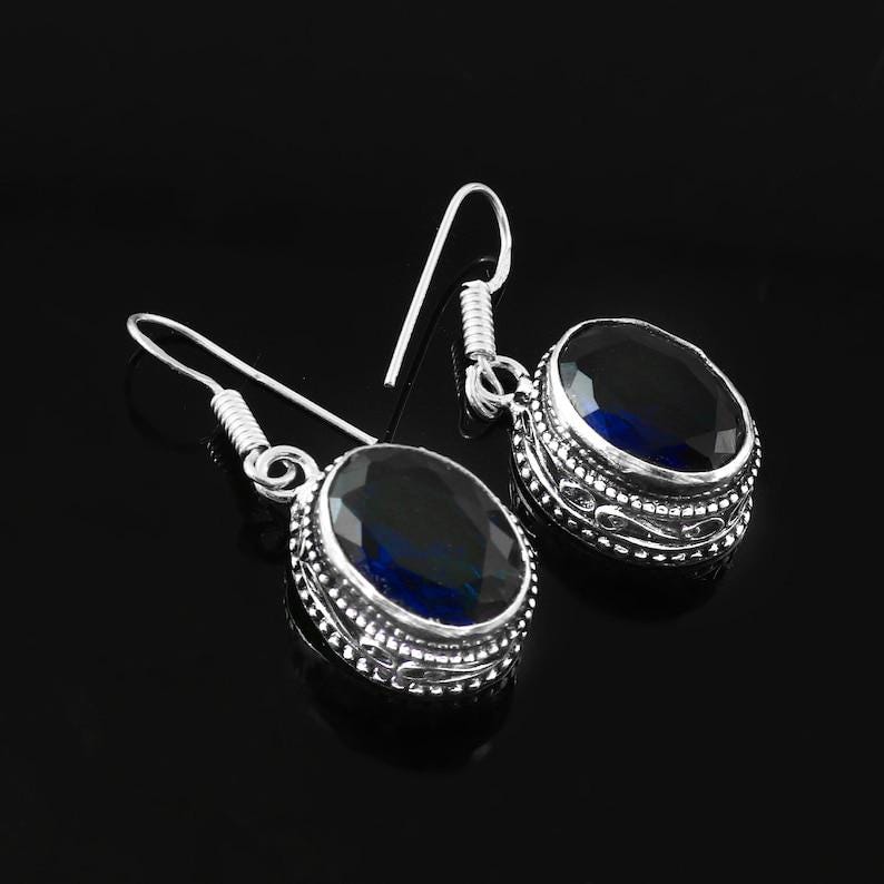 Tanzanite Quartz Sterling Silver Dangle Earrings: Vintage Boho Jewelry , Tanzanite Earring , Handmade Jewelry For Gift