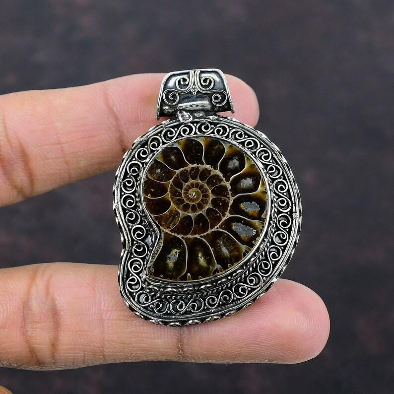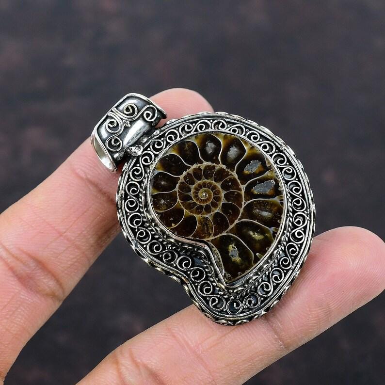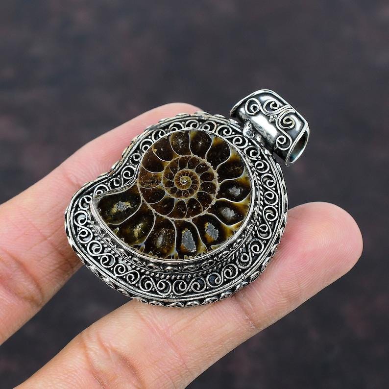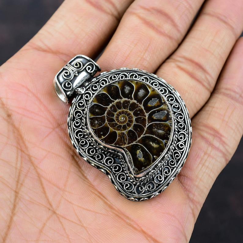 Ammonite Fossil 925 Sterling Silver Pendant - Boho Gemstone Jewelry