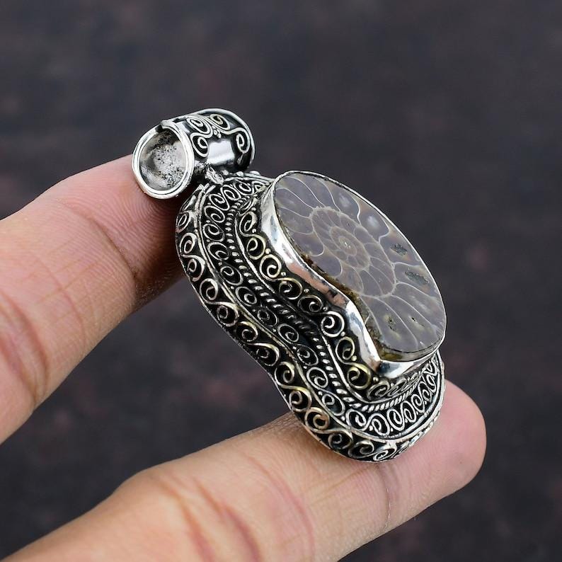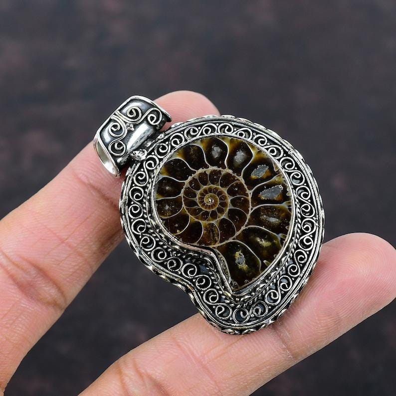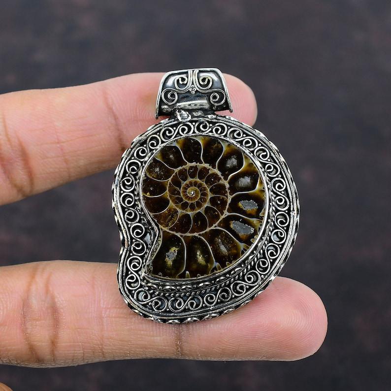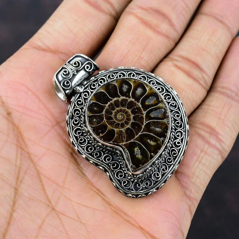 Ammonite Fossil Silver Pendant,925 Sterling Silver pendant, Ocean Fossil Gemstone Pendant,Gift for Him