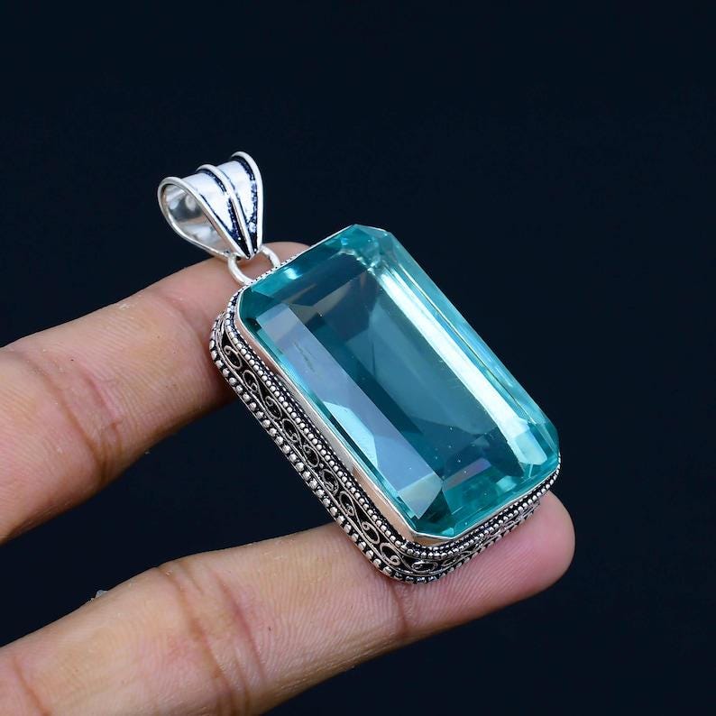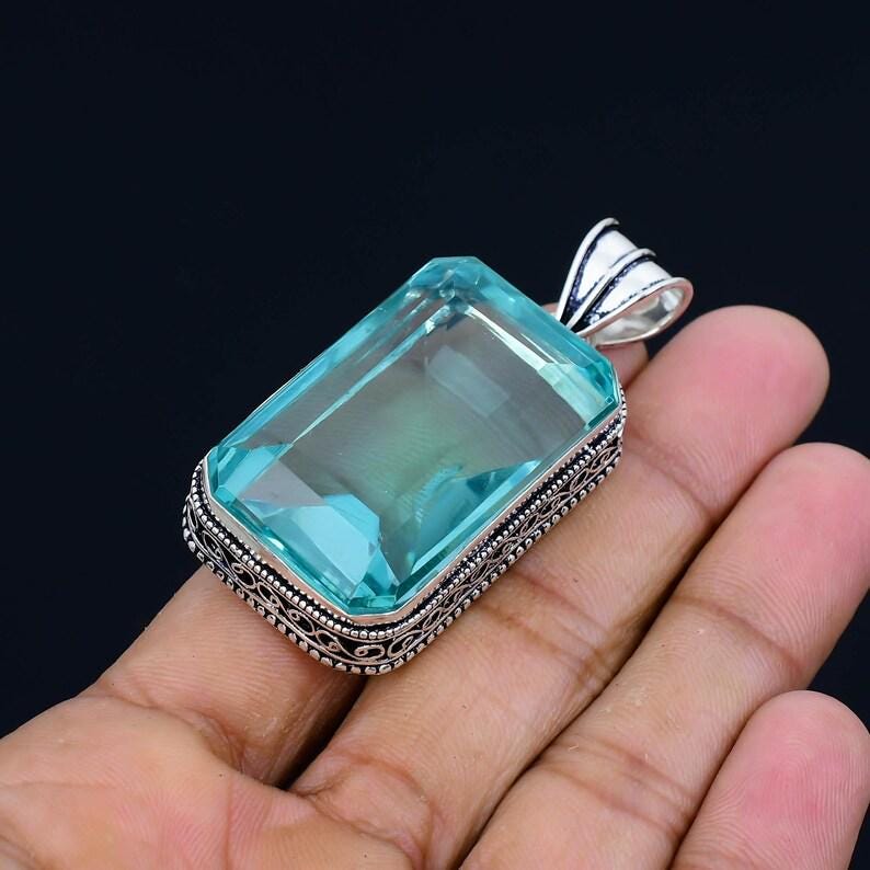 Aquamarine Gemstone Pendant, 925 Sterling Silver Pendant, Handmade Jewelry Vintage Pendant, Aquamarine Gemstone, Pendant Gifts For Wife