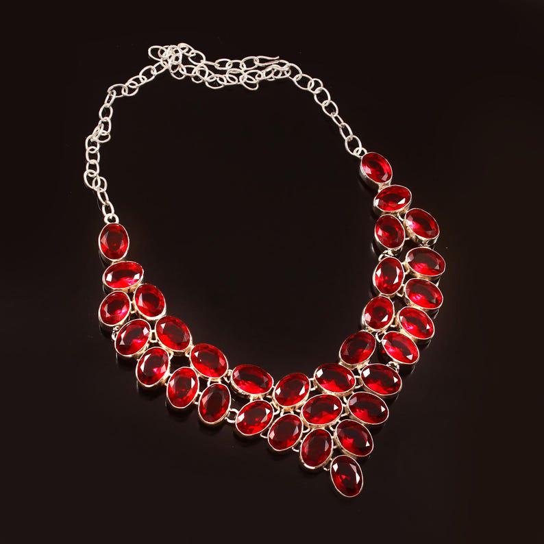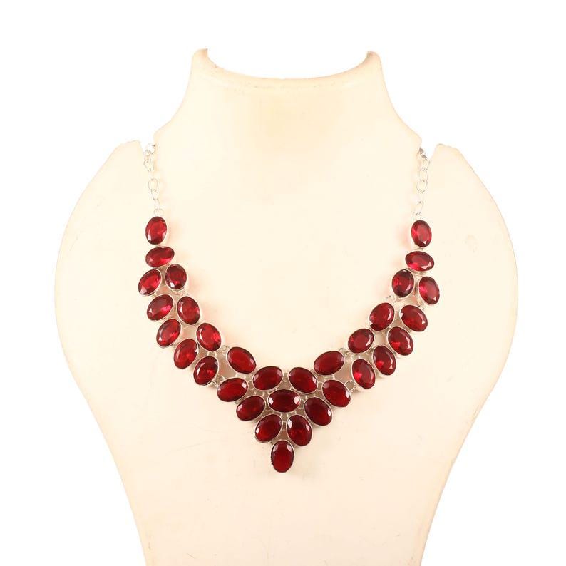 Garnet Necklace, 925 Sterling Silver Gemstone Necklace, Garnet Oval Shape Gemstone Necklace, Elegant Wedding Jewelry Gift
