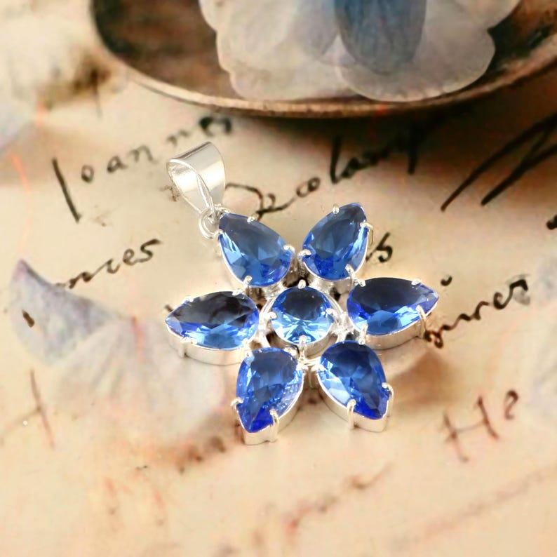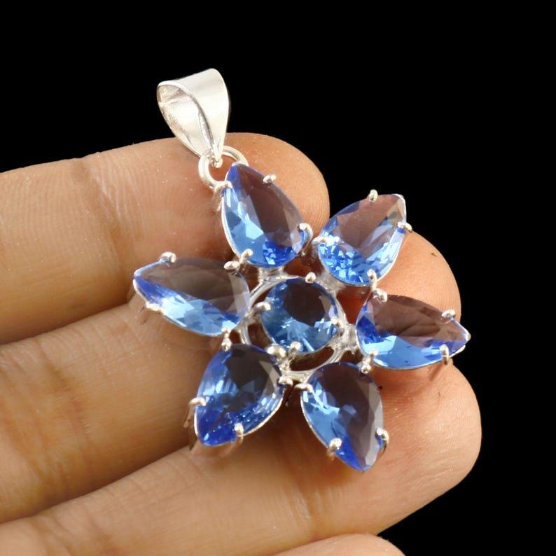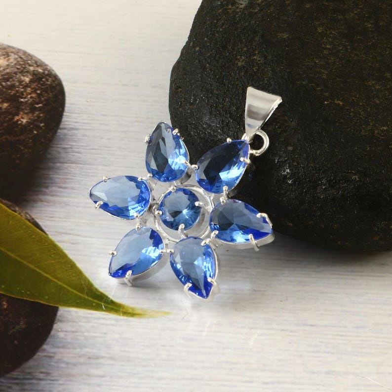 Lab-Created Tanzanite Flower Pendant: Handmade 925 Sterling Silver
