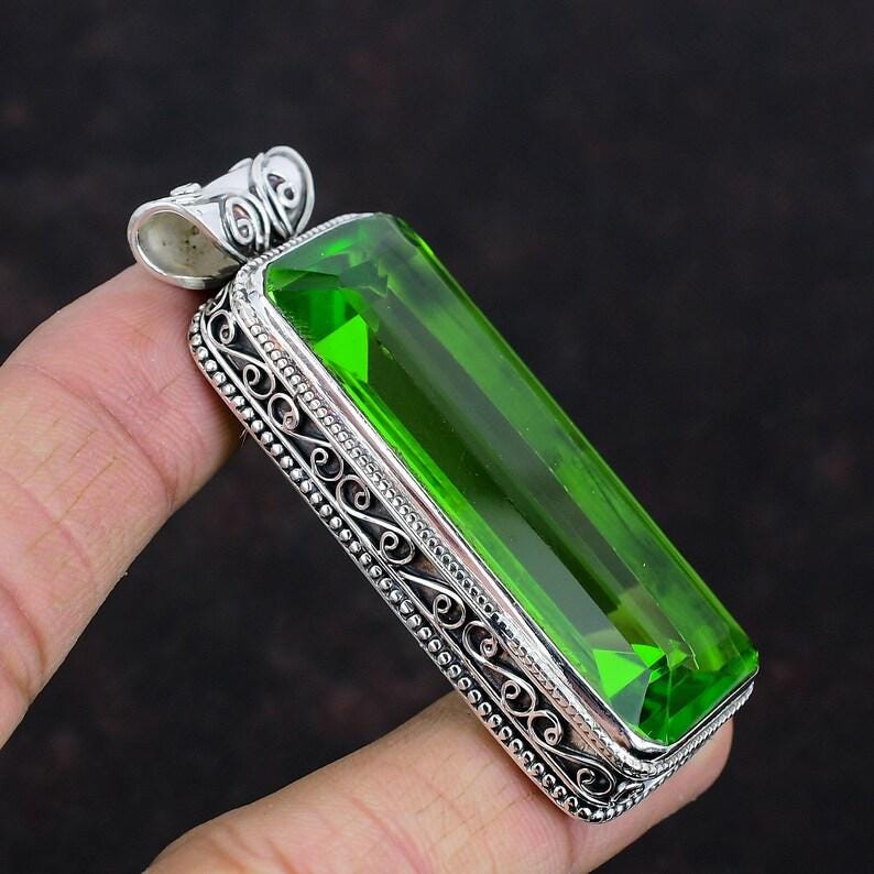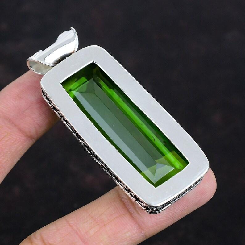 faceted peridot pendant gemstone pendant,925 sterling silver pendant,handmade jewelry,vintage pendant