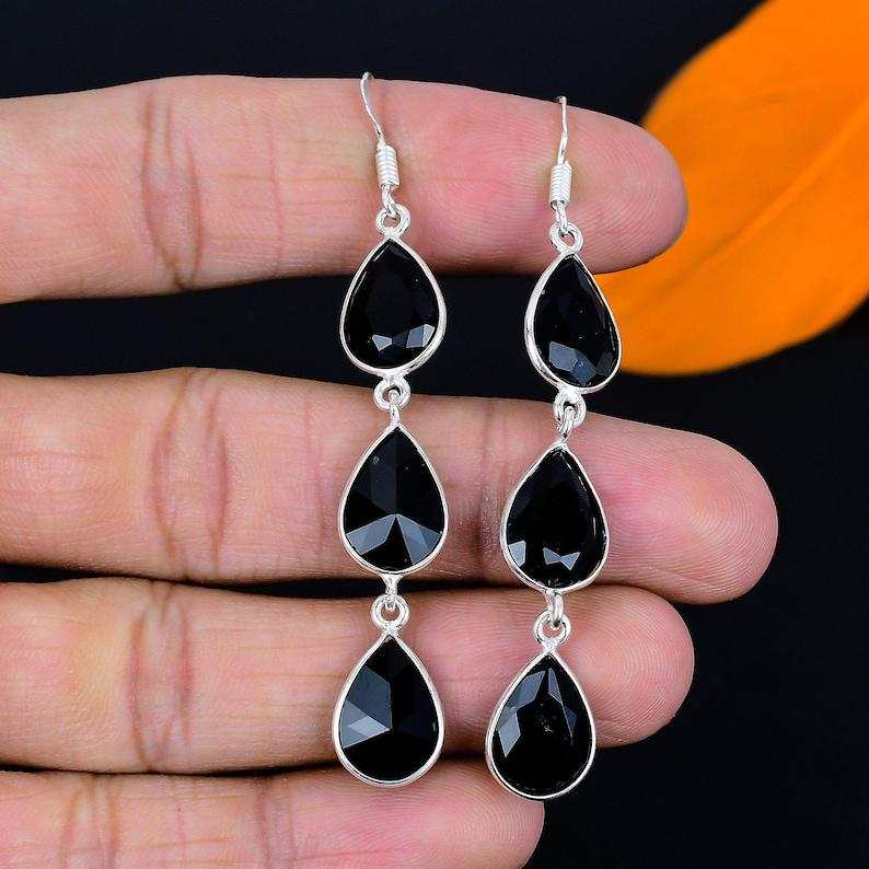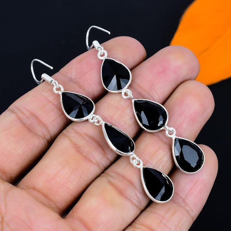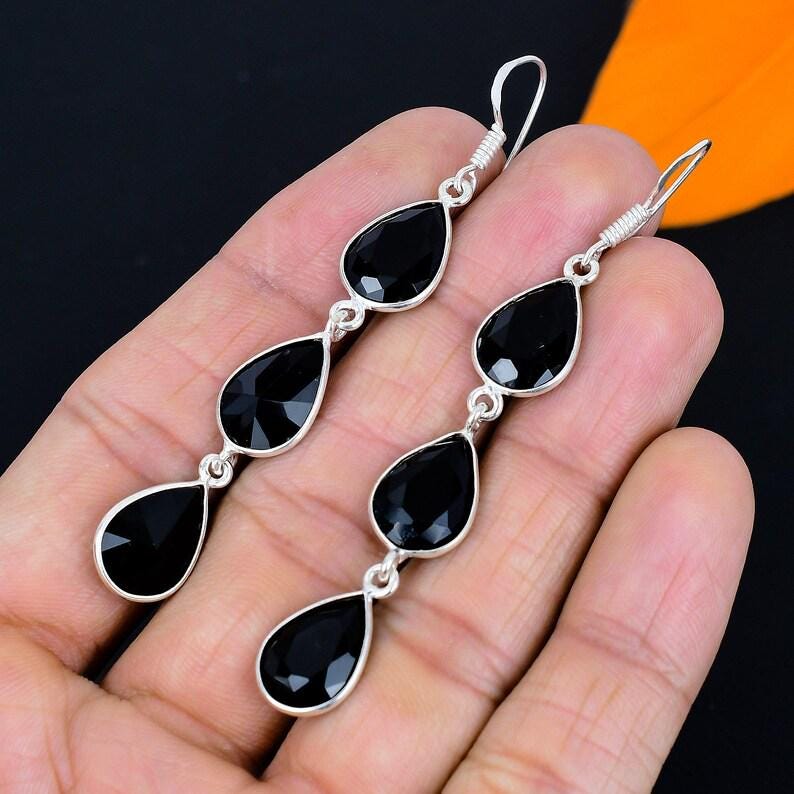 Handmade Black Onyx Earrings, 925 Sterling Silver, Antique Style Dangle, Boho Jewelry, Artisan Crafted, Unique Gift for Her Gifts For Women