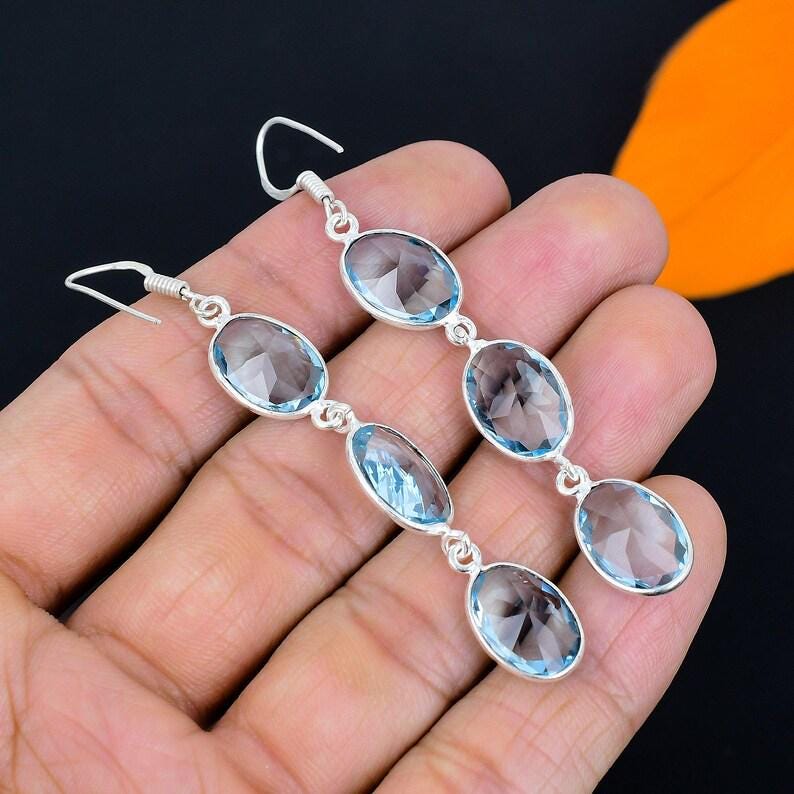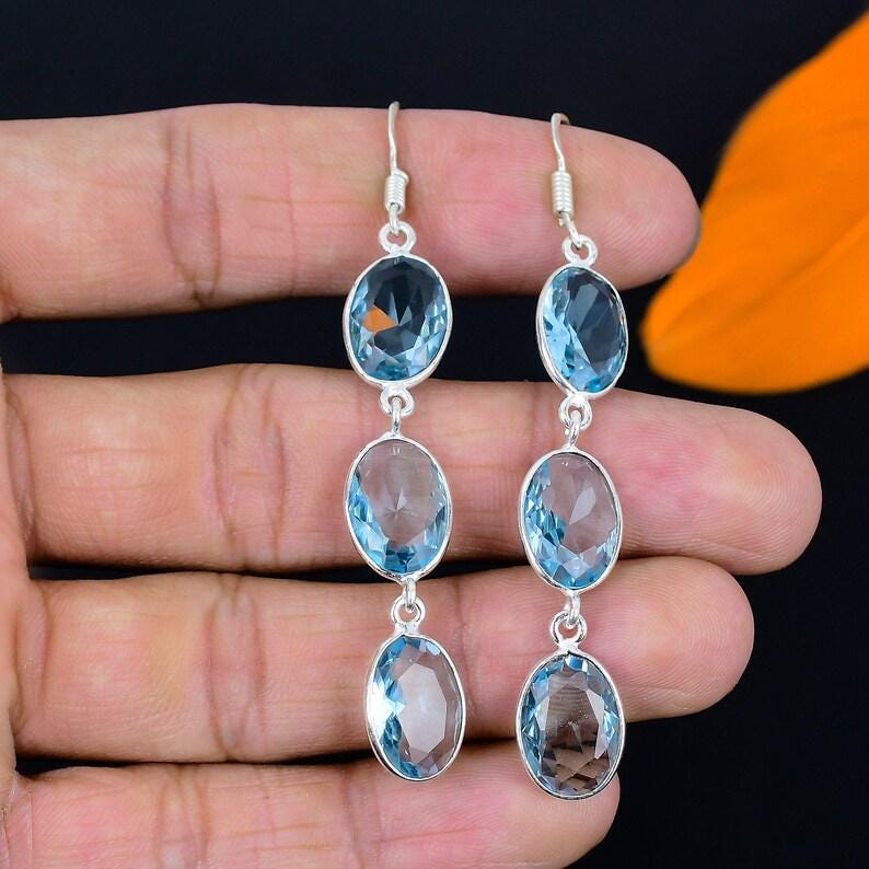 Swiss Blue Topaz Earring, 925 Sterling Silver Earring Beautiful Gemstone Earring, topaz drops Birthday Earring Gift For Her For Women