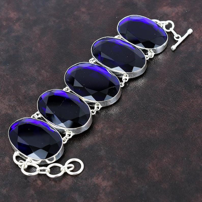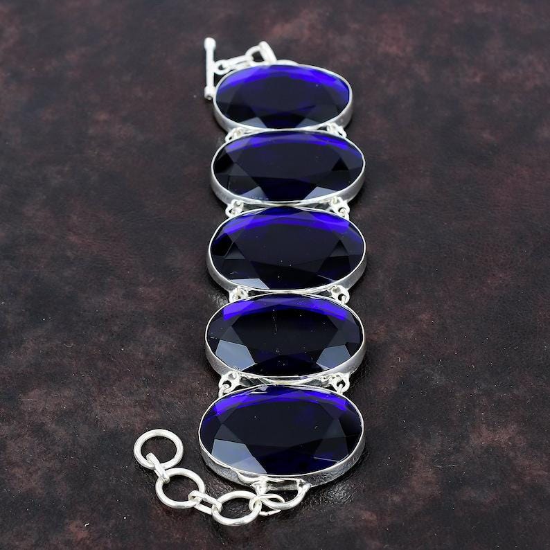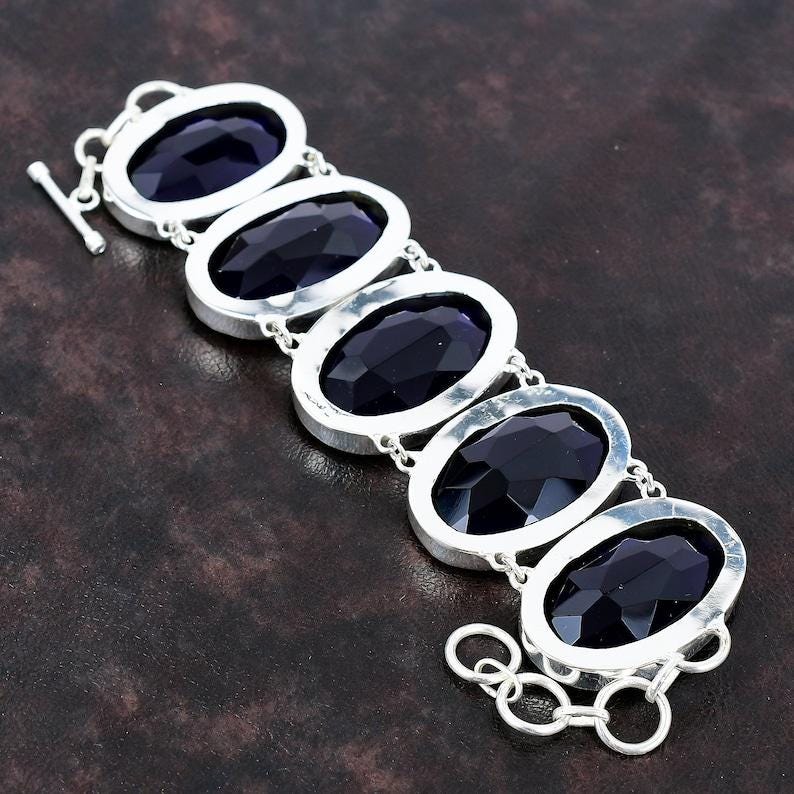 Tanzanite Faceted Bracelet 925 Sterling Silver Bracelet Handmade Boho Jewelry Adjustable Chain Bracelet Gift For Him Gemstone Jewelry