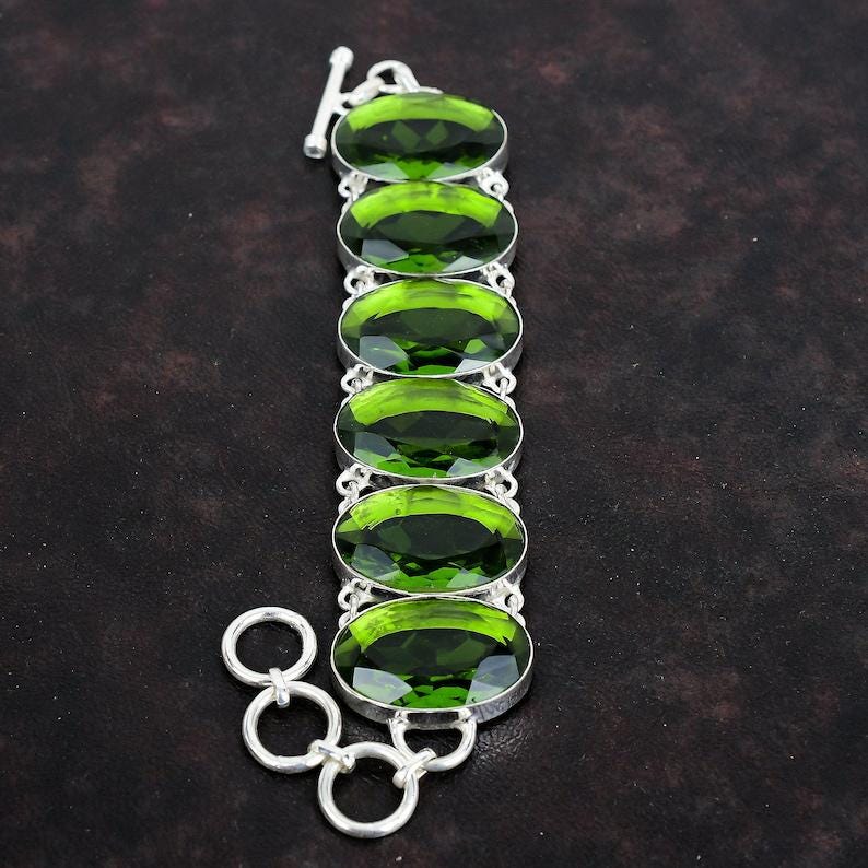 Handmade Peridot Sterling Silver Bracelet - Adjustable Gemstone Jewelry