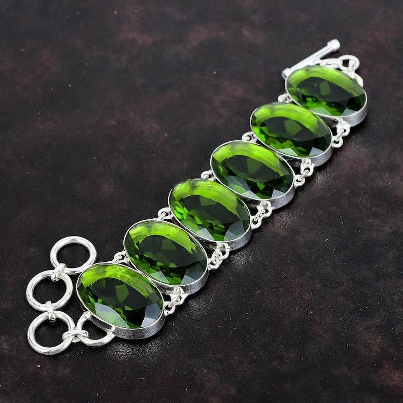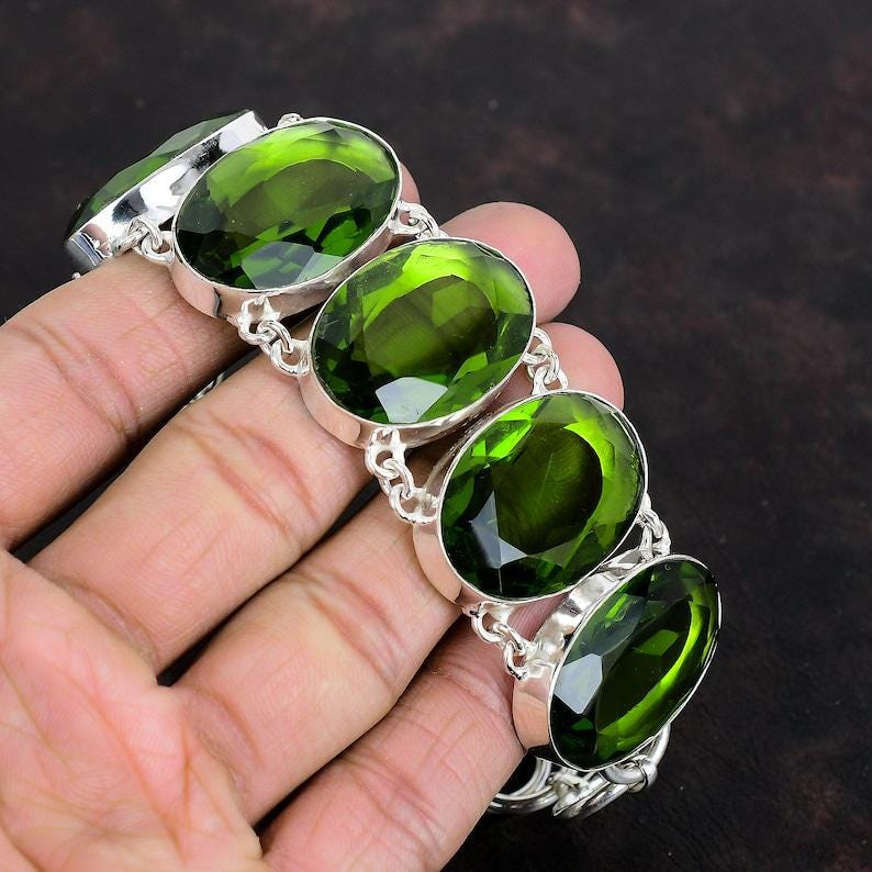 Peridot faceted bracelet handmade gemstone bracelet unique jewelry 925 sterling silver bracelet adjustable chain bracelet anniversary gifts