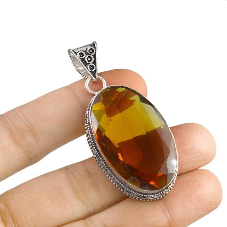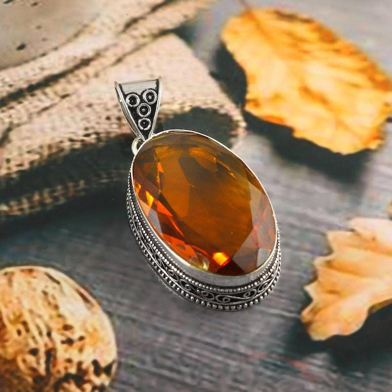 Handmade Citrine Pendant: 925 Sterling Silver Boho Jewelry