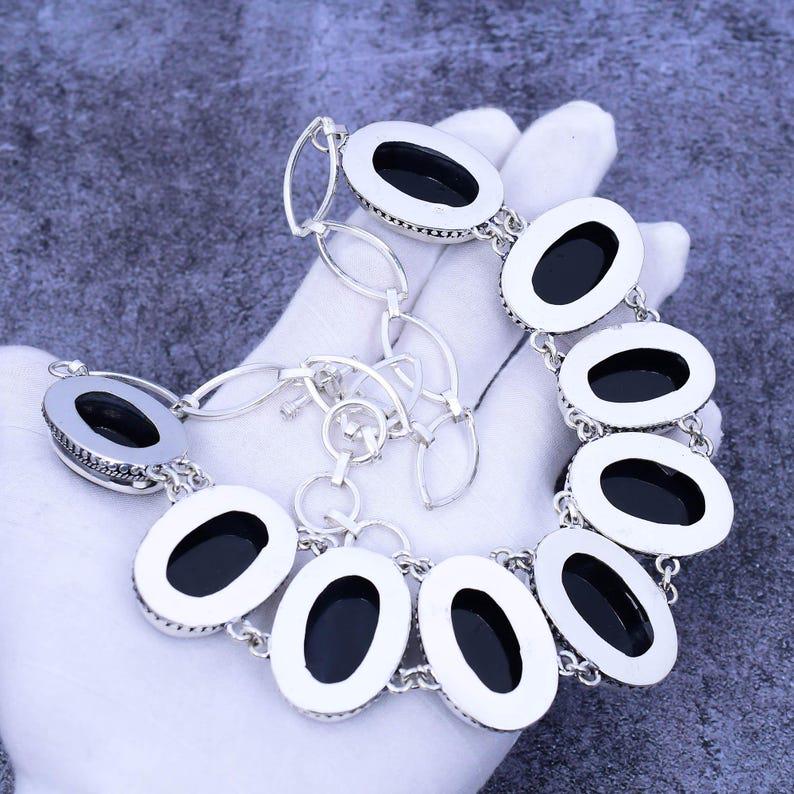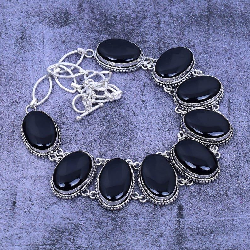 Black Onyx Gemstone Necklace 925 Sterling Silver Necklace Adjustable Chain Necklace Bridal Necklace Bohemian Jewelry Valentine Day Gift