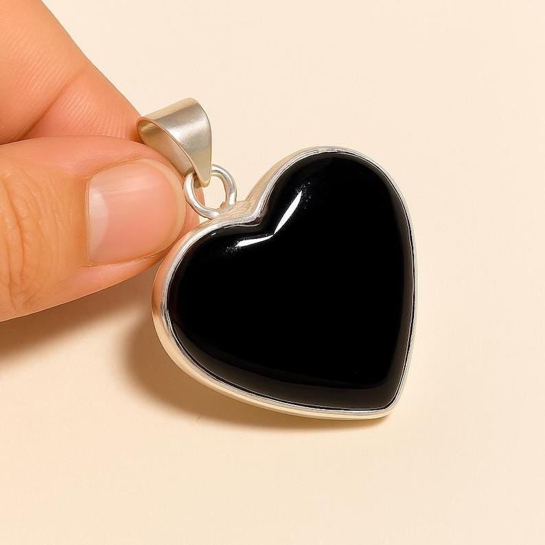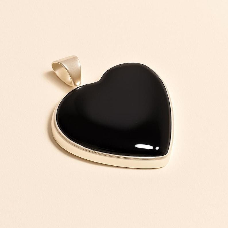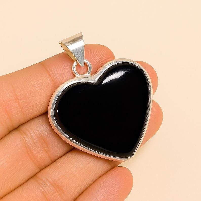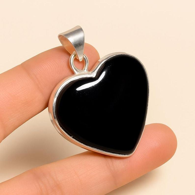 Black Onyx Heart Pendant Necklace | Handmade Silver Gemstone Jewelry | Romantic Crystal Pendant | Gift for Her | Statement Boho Necklace