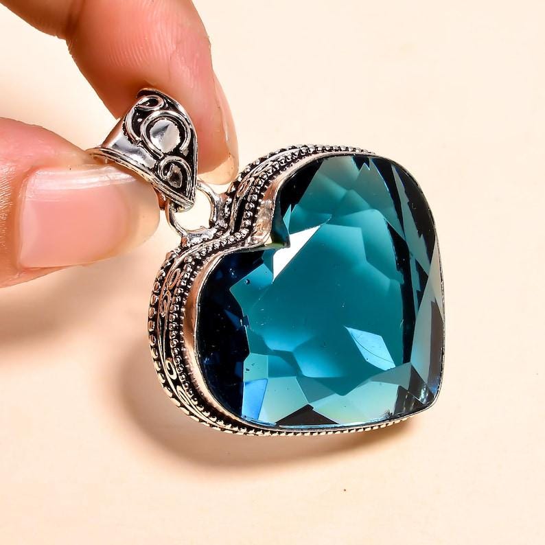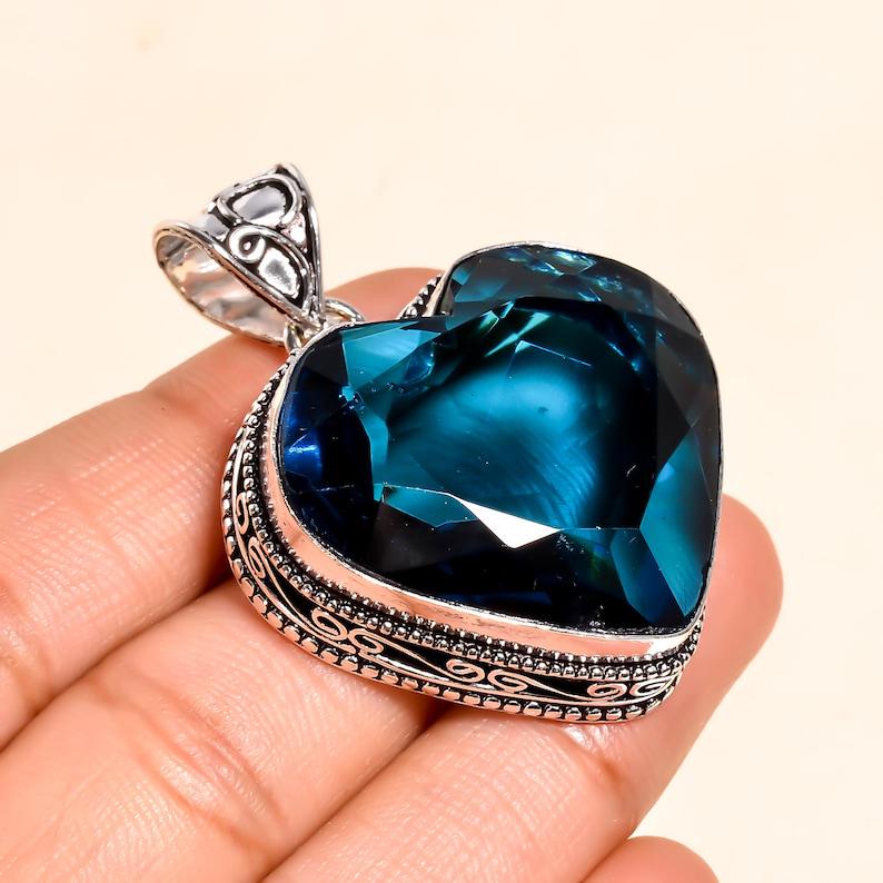 Blue Topaz Heart Pendant Necklace | Handmade Silver Gemstone Jewelry | Romantic Crystal Pendant | Gift for Her | Statement Boho Necklace"