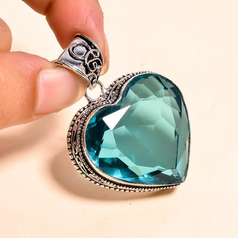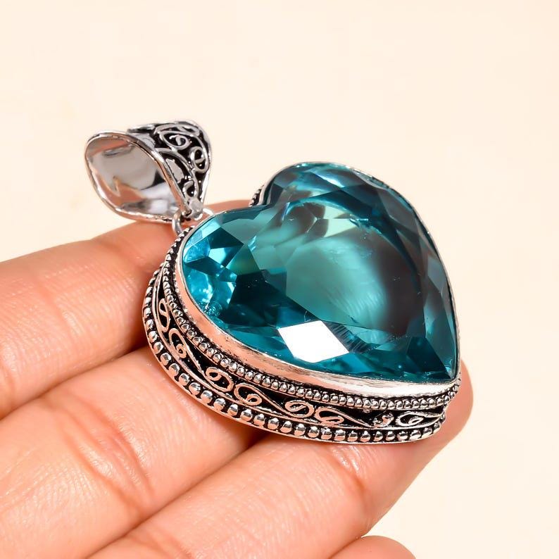 heart-shaped Blue Topaz Crystal Pendant | Handmade Silver Gemstone Jewelry | Unique Boho Crystal Pendant | Gift for Her | Statement Necklace