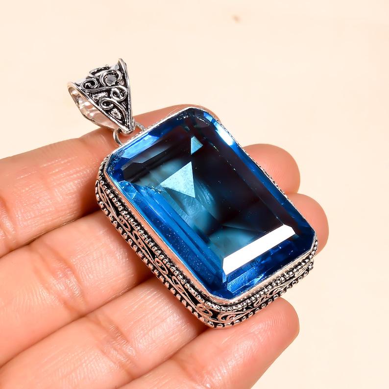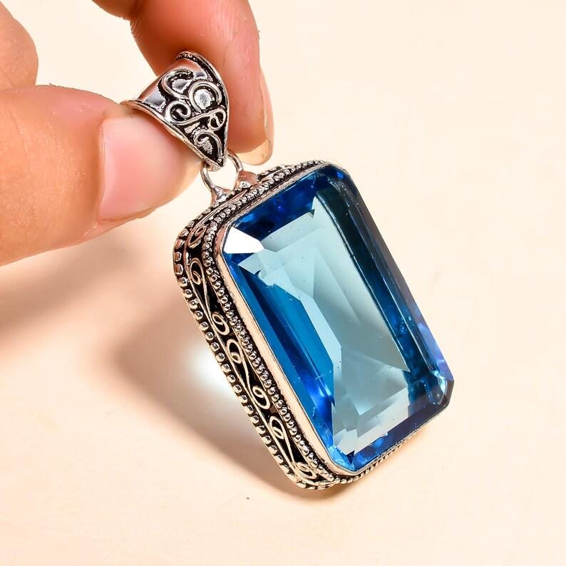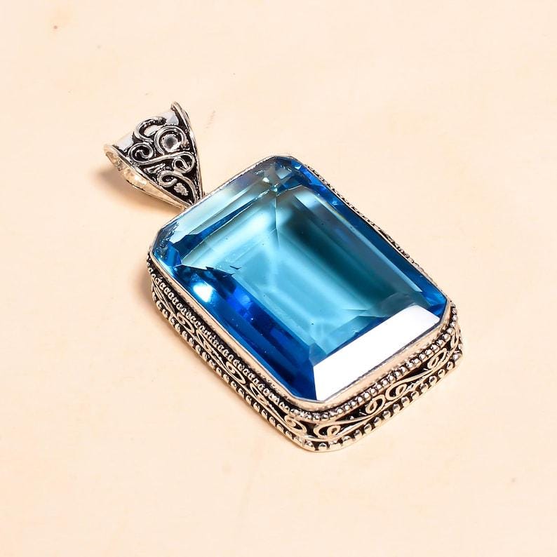 Blue Topaz Pendant Necklace | Handmade Silver Gemstone Jewelry | Unique Boho Crystal Pendant | Gift for Her | Statement Necklace"