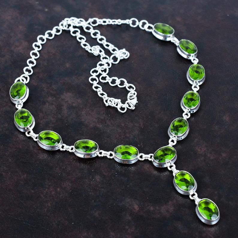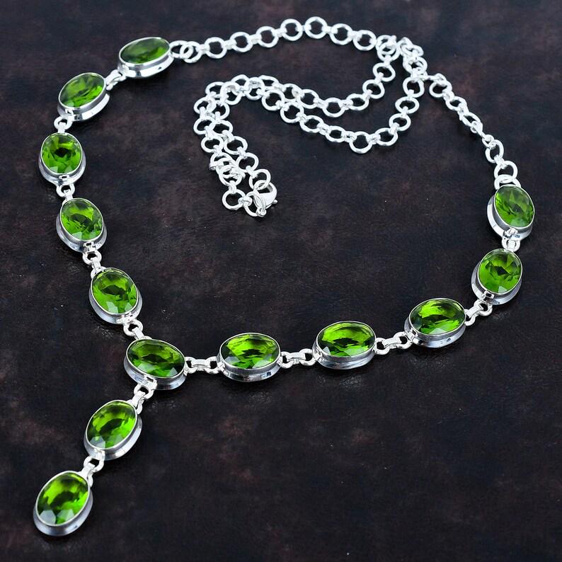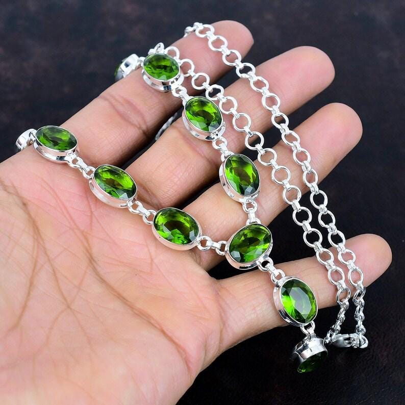 Peridot Necklace Handmade 925 Sterling Silver Adjustable Chain, Peridot Faceted Handmade Gemstone Jewelry ,Necklace Wedding Gifts