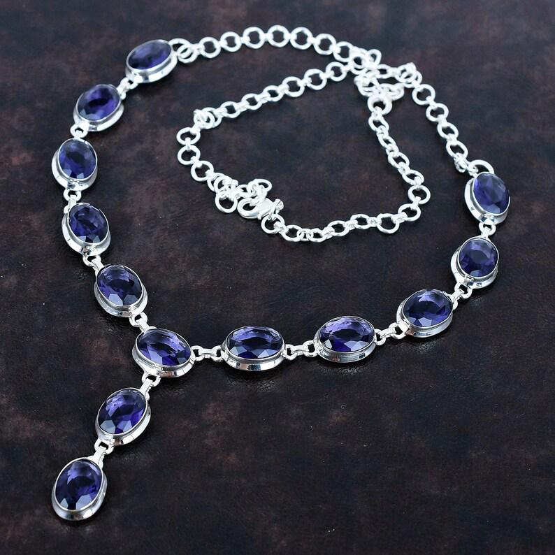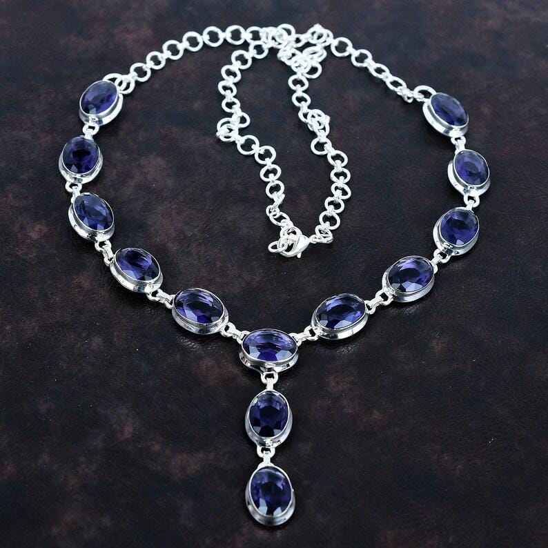African amethyst faceted necklace handmade jewelry gemstone necklace 925 sterling silver necklace adjustable chain necklace gifts for mother