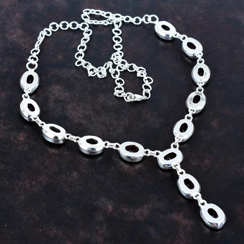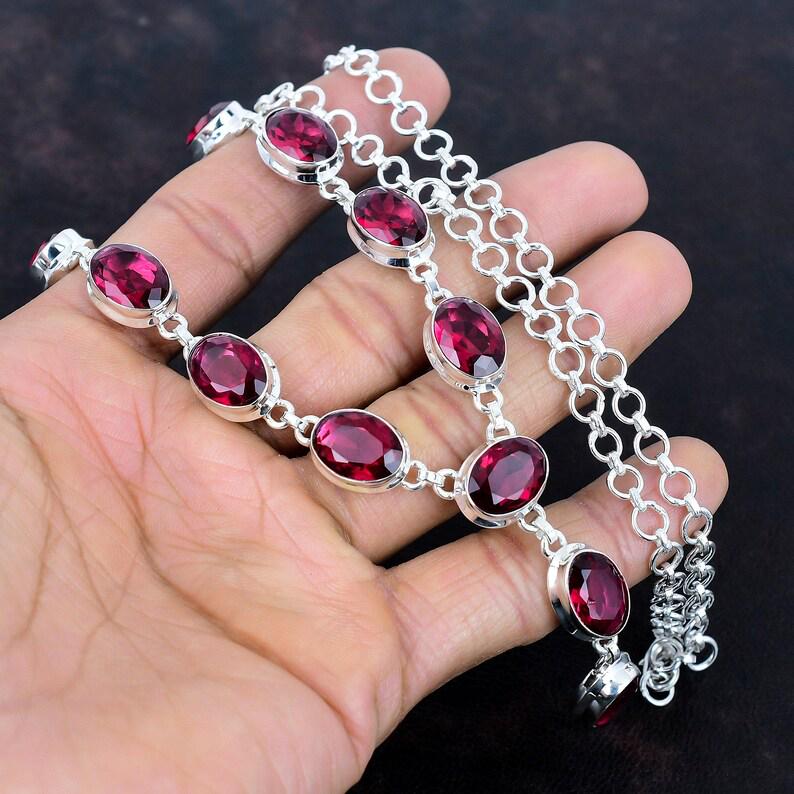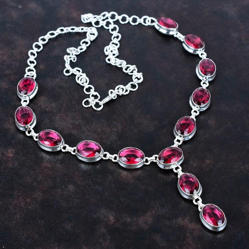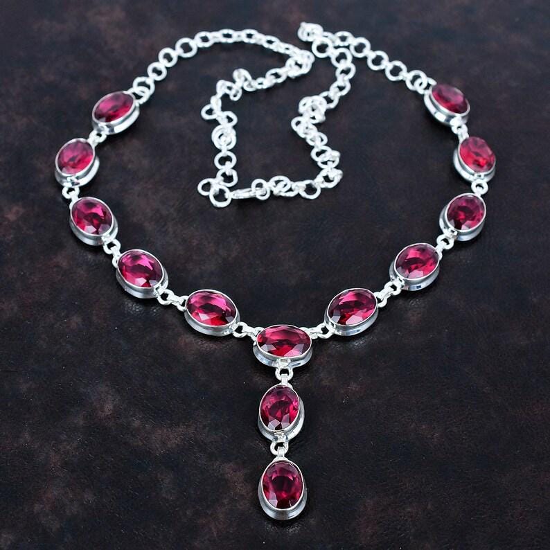 Rubellite faceted necklace gemstone necklace dainty jewelry 925 sterling silver necklace adjustable chain necklace handmade jewelry for gift