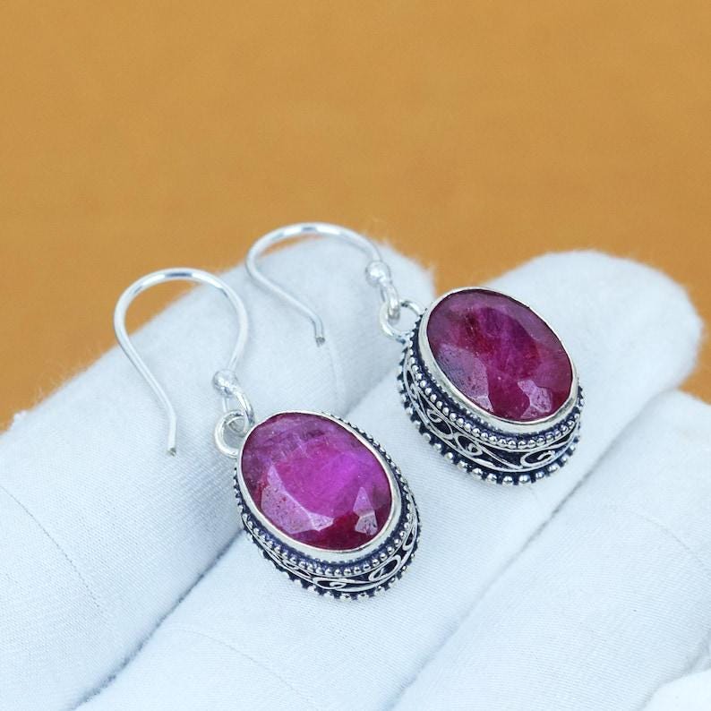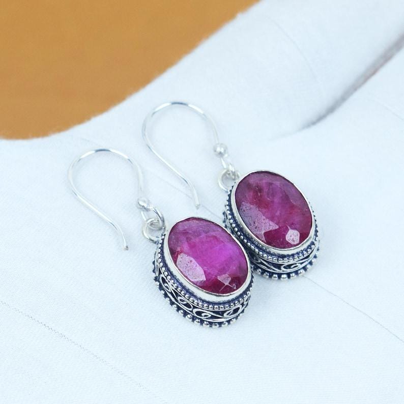 Kashmir Ruby Gemstone Earring, Ruby 925 Sterling Silver Earring, Ruby Handmade Jewelry, Bohemian Earring, Gifts For Women's Earring