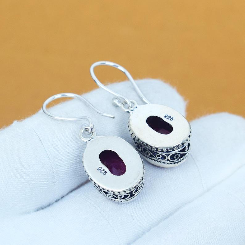 Handmade Kashmir Ruby 925 Sterling Silver Bohemian Earrings