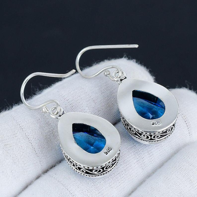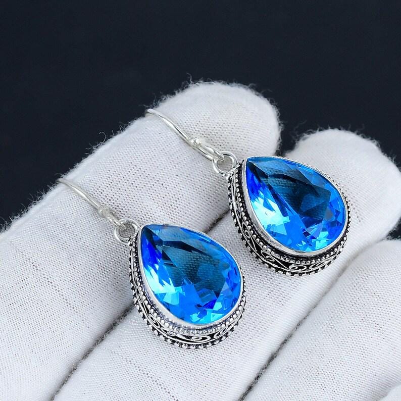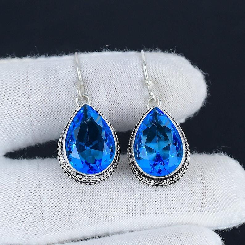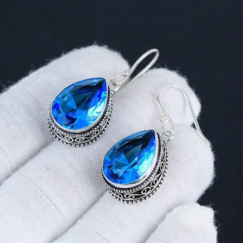 Swiss Blue Topaz Earring, 925 Sterling Silver Earring, Handmade Silver Earring, Antique Earring, Swiss Blue Topaz Gemstone, Gifts For Mother